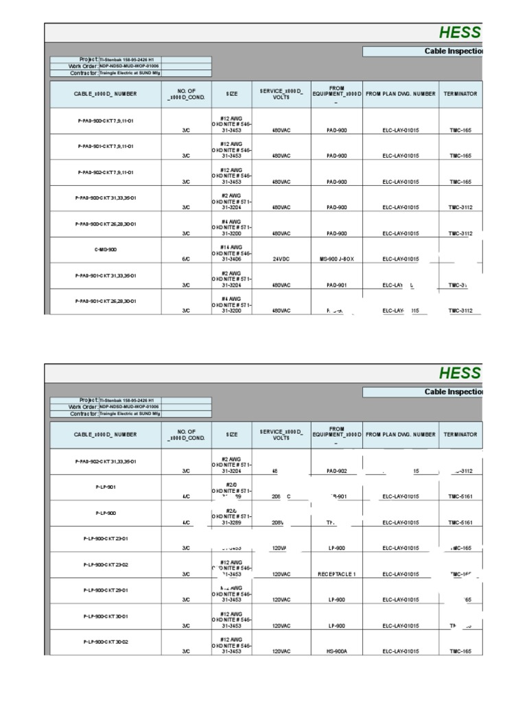 Cable Inspection Matrix-Filled Out | PDF | Electrical Components ...