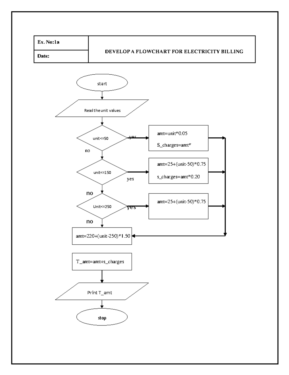 Python Record - Ex:1(a) CONSTUCT AN FLOWCHART FOR ELECTRICITY BILL AIM ...