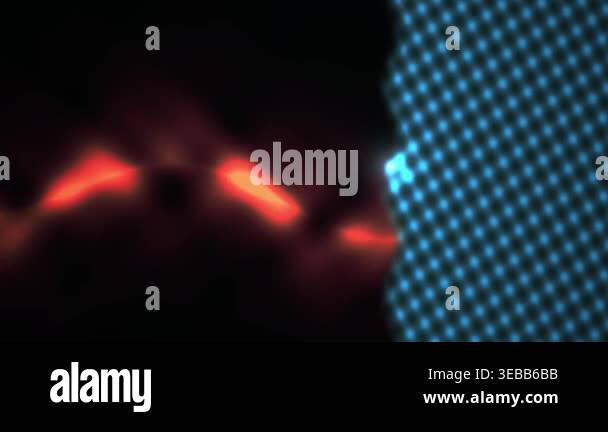 Abstract red light energy beams interacting with blue digital dot ...