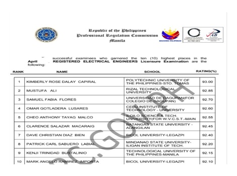 Top 10: April 2026 Electrical Engineers REE board exam results