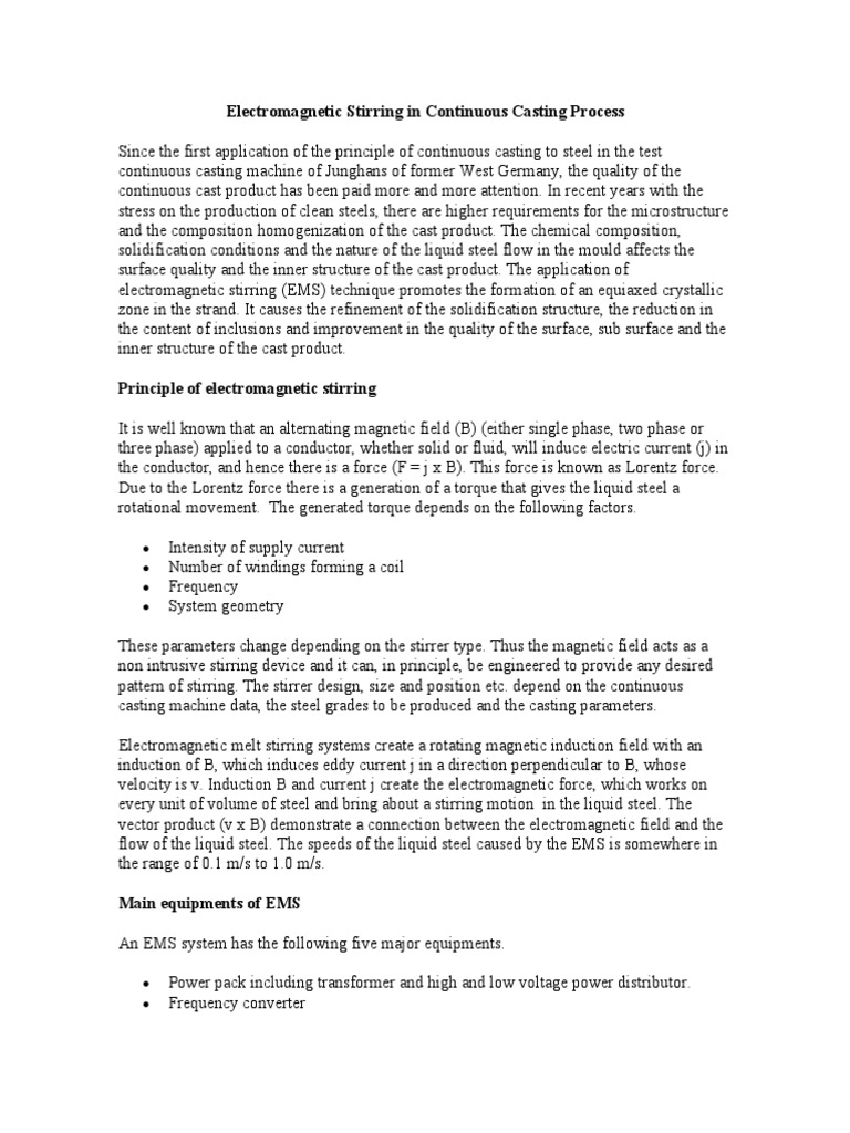 Electromagnetic Stirring in Continuous Casting Process | PDF | Casting ...