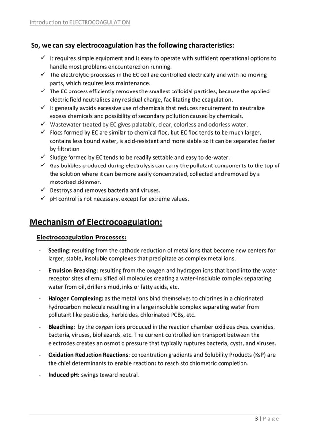 Introduction to Electrocoagulation - water treatment | PDF
