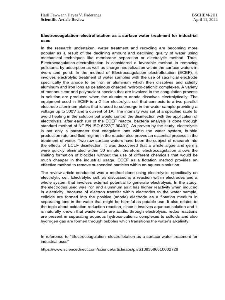 Electrocoagulation for Water Treatment | PDF | Chemistry | Materials ...