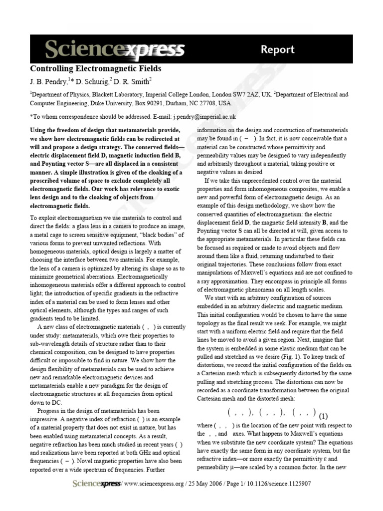 Electromagnetic Cloaking with Metamaterials | PDF | Metamaterial ...
