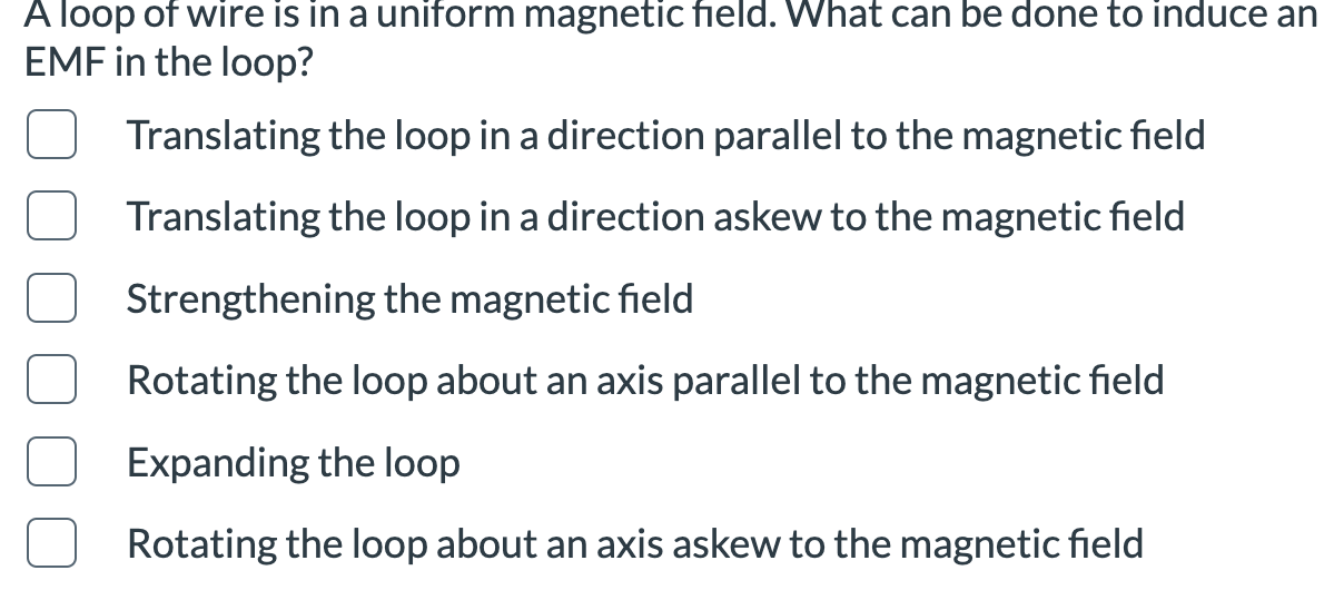 Solved e) Three methods for generating an EMF in a loop of | Chegg.com