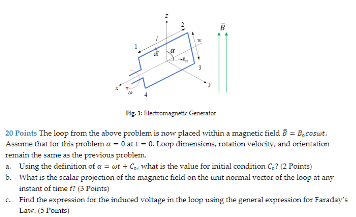 Solved Fig. 1: Electromagnetic Generator 20 Points The loop | Chegg.com