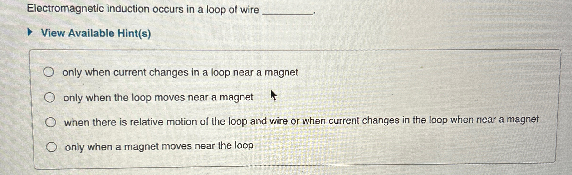 Solved Electromagnetic induction occurs in a loop of | Chegg.com