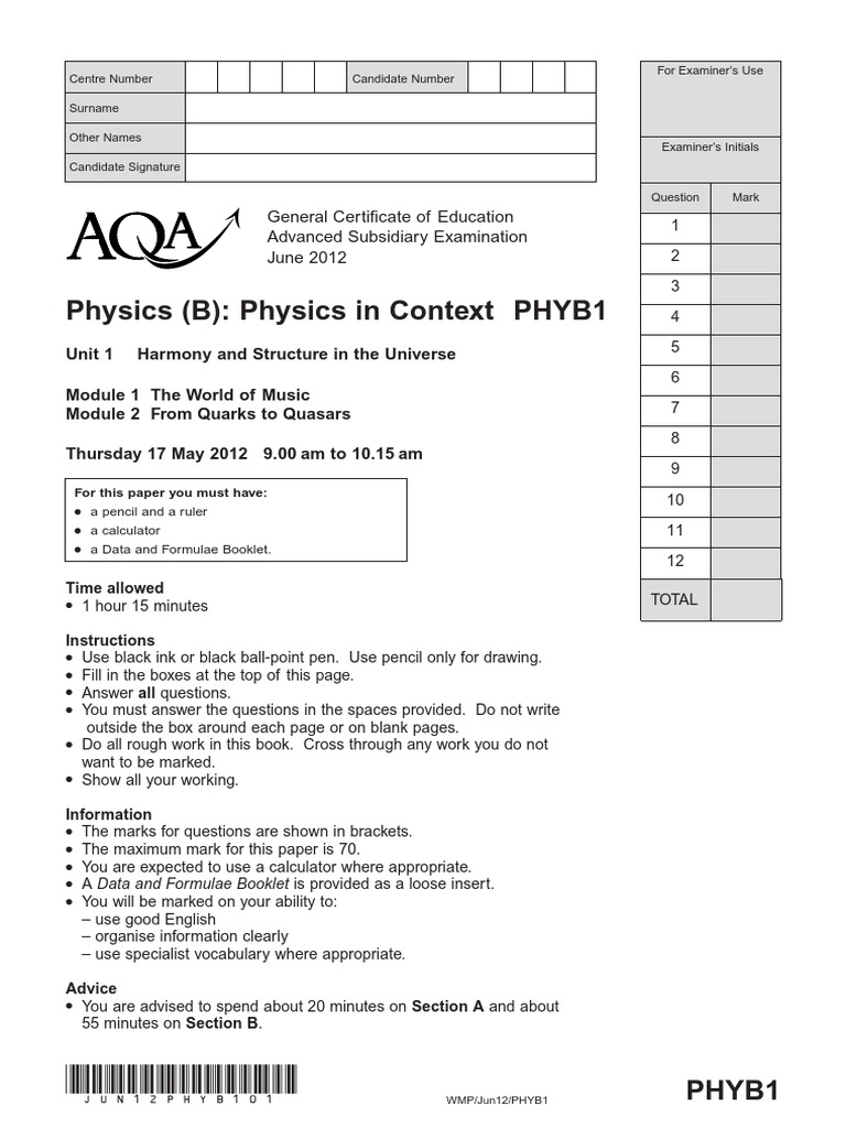 AQA PHYB1 QP Jun12 | PDF | Electron | Sampling (Signal Processing)