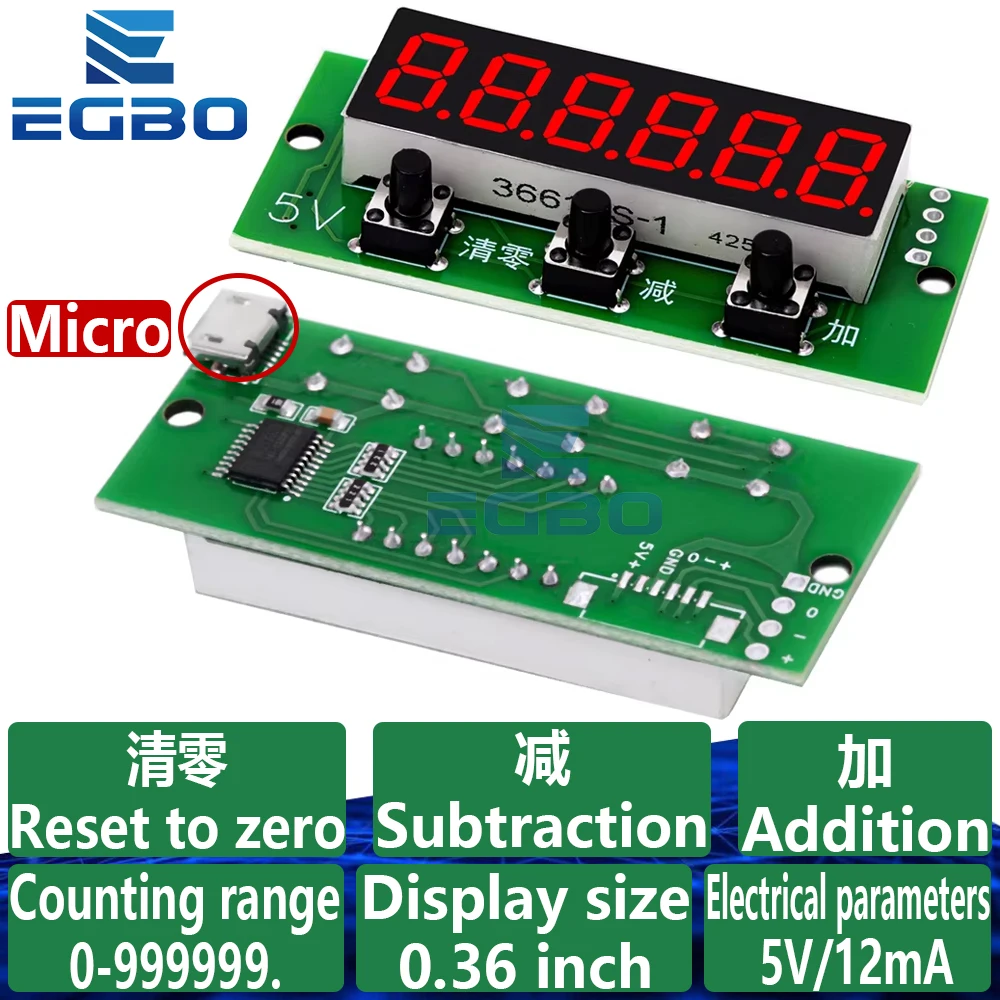 5V Digital Counter Module: 6-Digit Red Display with Addition ...