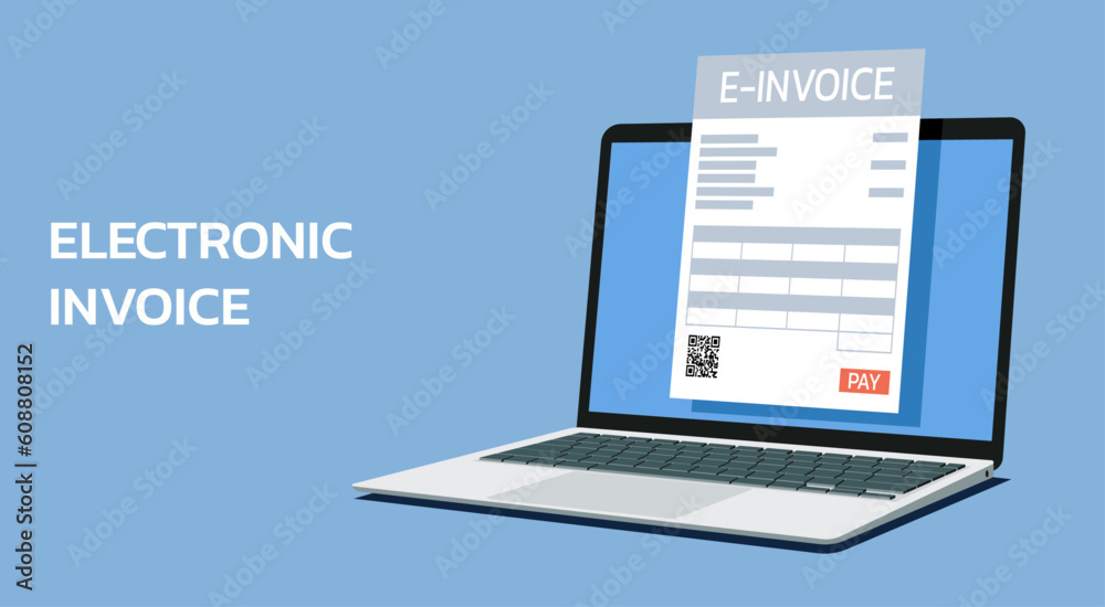 e-invoice concept on laptop computer with electronic receipt or invoice ...