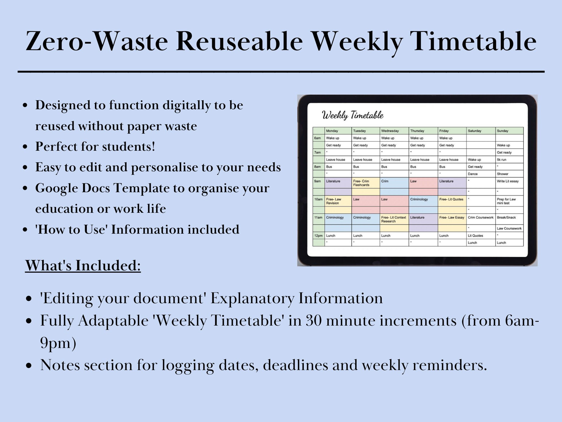 Digital Weekly Timetable Template, Reuseable and Zero-waste - Etsy
