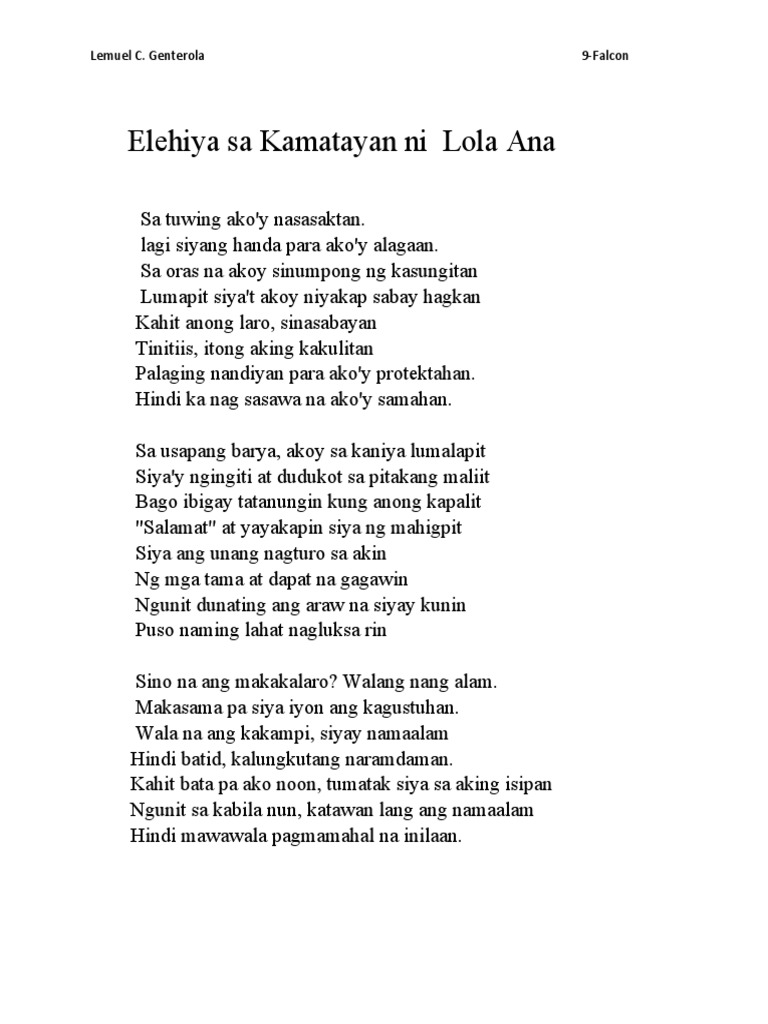 Elehiya sa Kamatayan ni Lola Ana | PDF