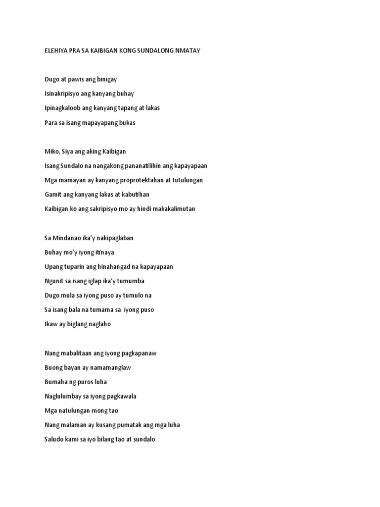 Elehiya Pra Sa Kaibigan Kong Sundalong Nmatay | PDF