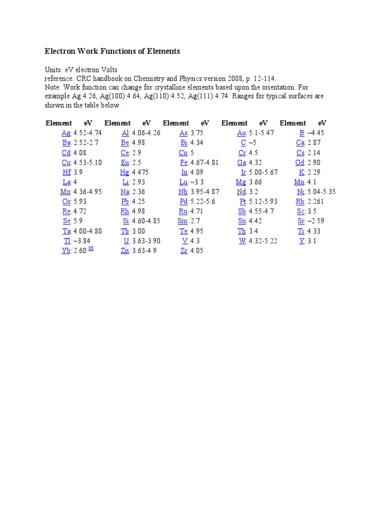 Work Function of Elements | PDF | Art | Technology & Engineering