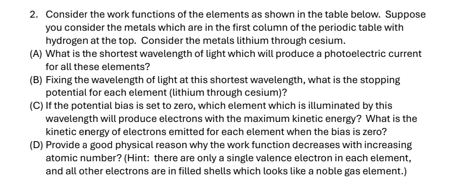 Consider the work functions of the elements as shown | Chegg.com