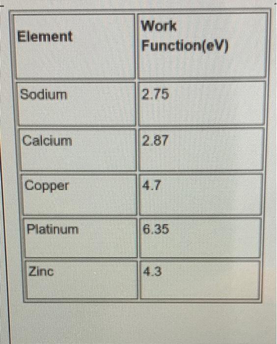 Answered: Element Work Function (eV) Aluminum 4.3… | bartleby