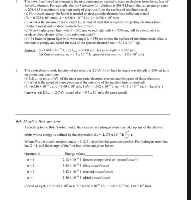 Solved 1. The work function of an element is the minimum | Chegg.com