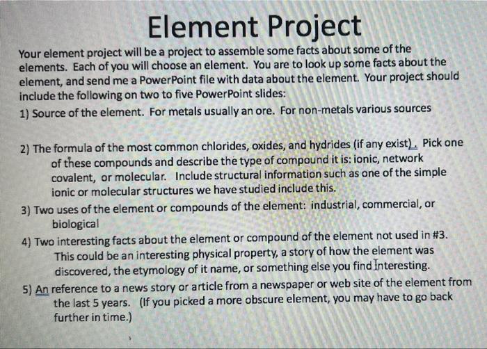 Solved Element Project Your element project will be a | Chegg.com