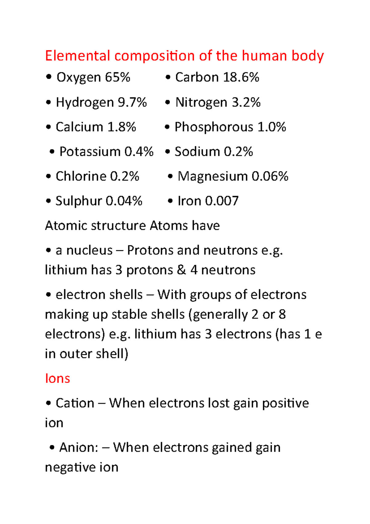 Elemental composition of the human body - Atomic structure Atoms have a ...