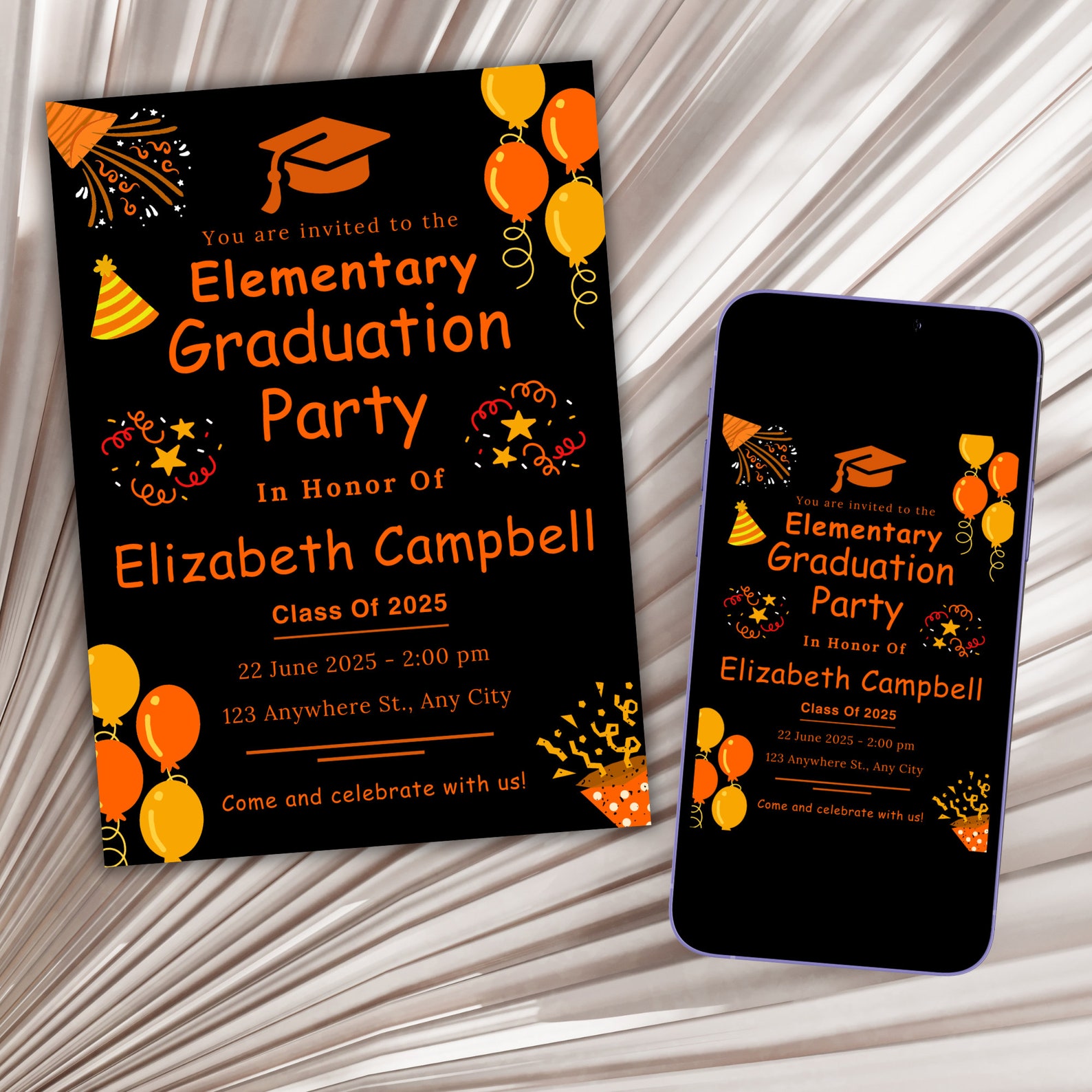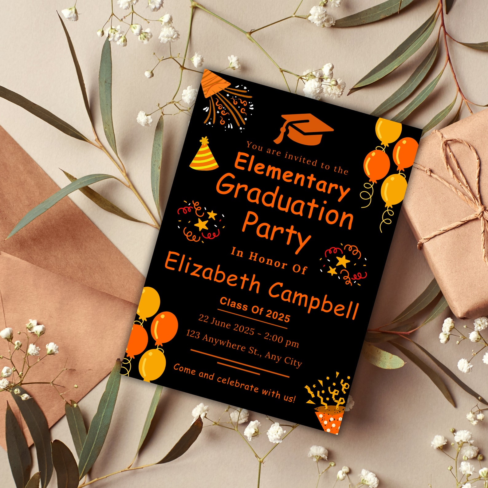 Editable Elementary Graduation Party Invitation Canva Template, Grad ...