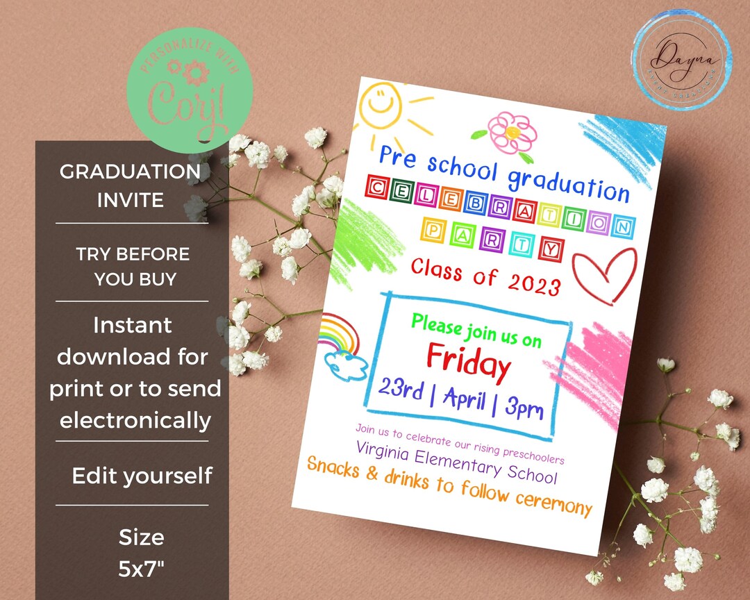 Graduation Invitation Editable Template, Pre-k Kindergarten, Preschool ...
