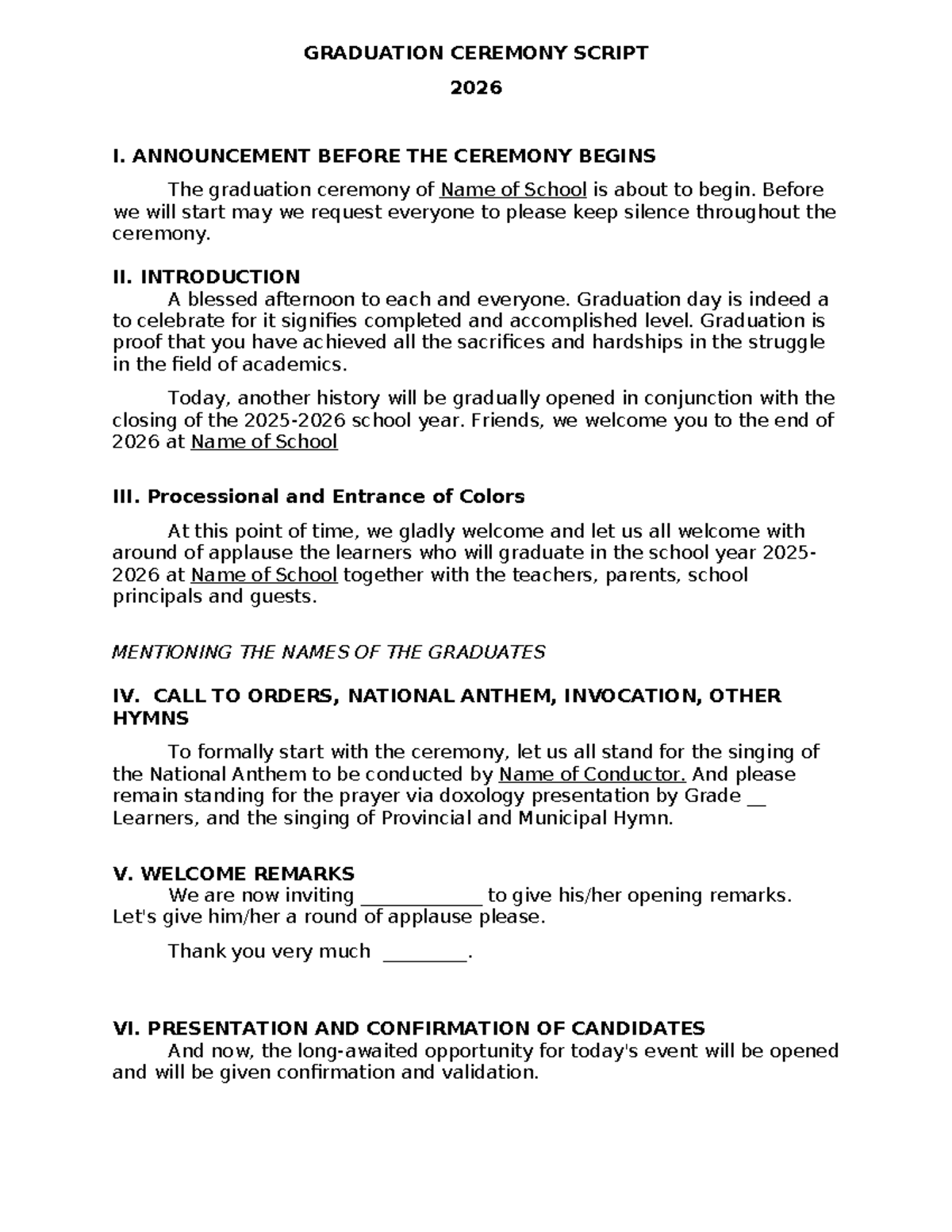 Graduation Ceremony Script 2026: A Celebration of Achievement - Studocu