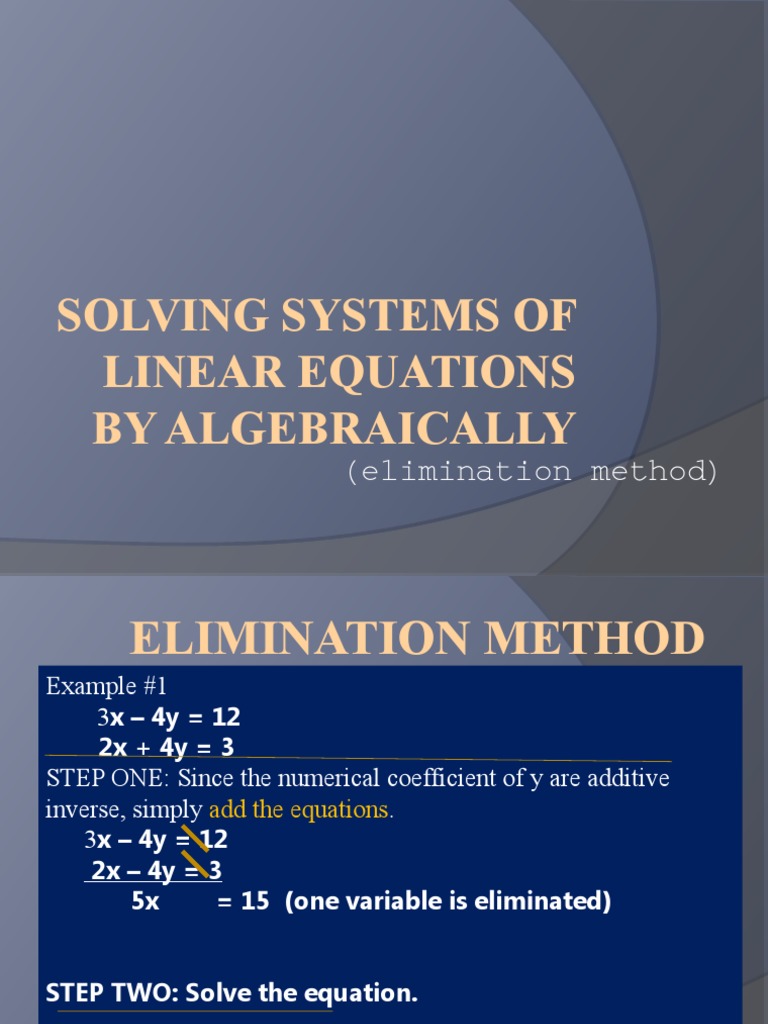 Solving System Of Linear Equations By Elimination Method Ppt - Tessshebaylo