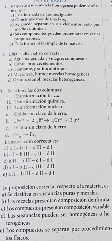 Resuelto:Respecto a una mezcla homogénea podemos afir- mar que: a) Está ...