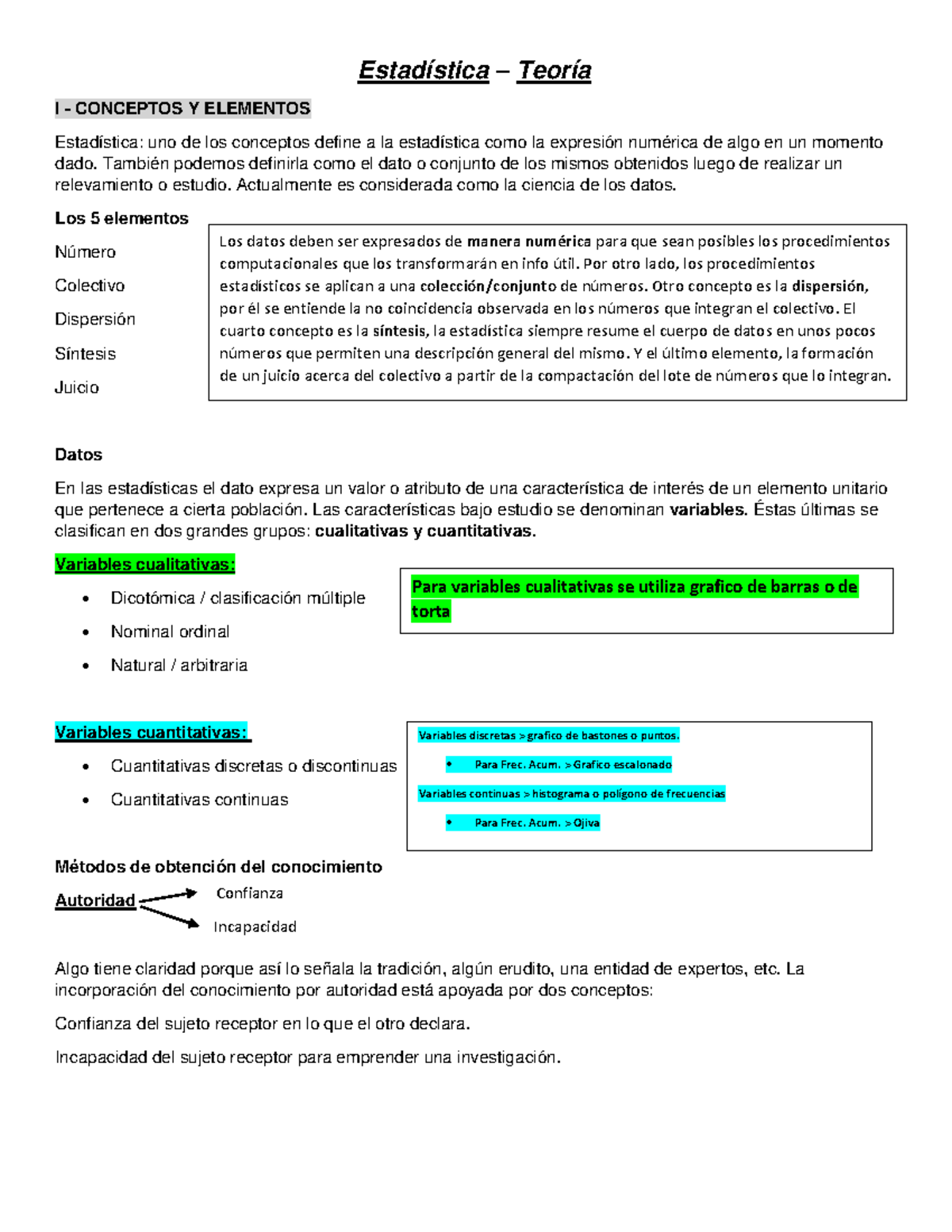 Estadística Teoría I: Conceptos y Elementos Fundamentales - Studocu