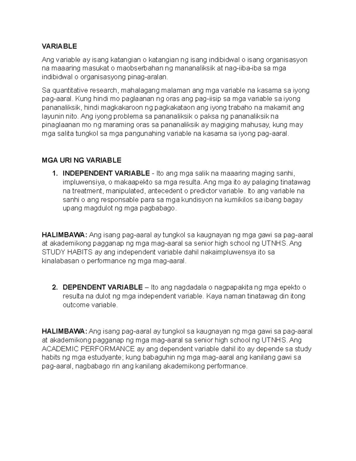 VARIABLES IN QUANTITATIVE RESEARCH: INDEPENDENT & DEPENDENT - Studocu