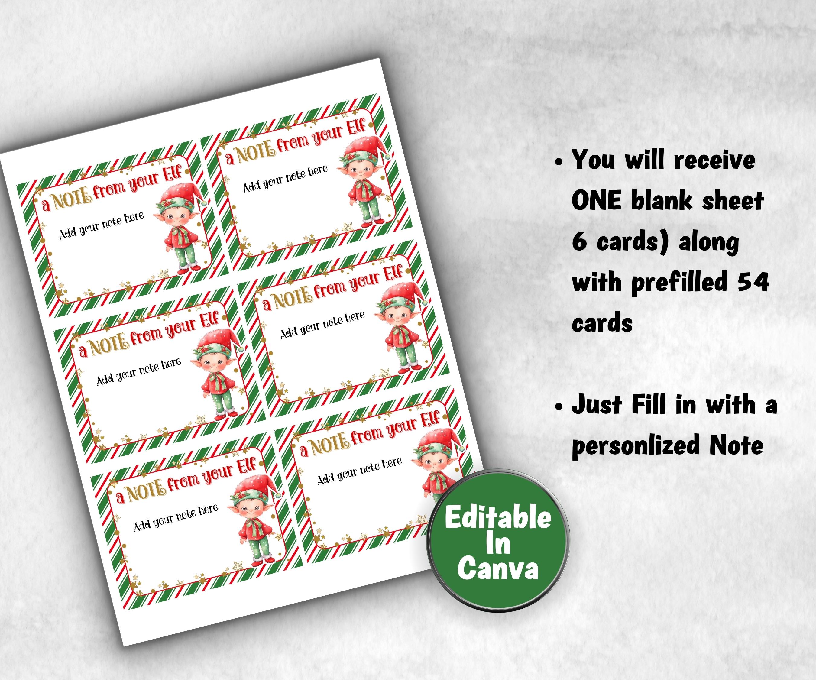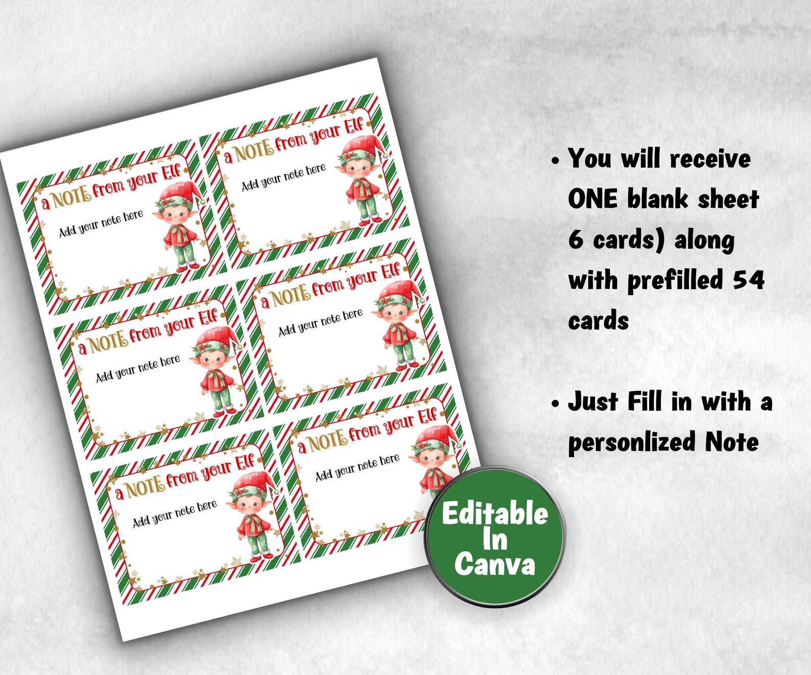 Editable Elf Note Cards Template, Christmas Printable (digital Download ...