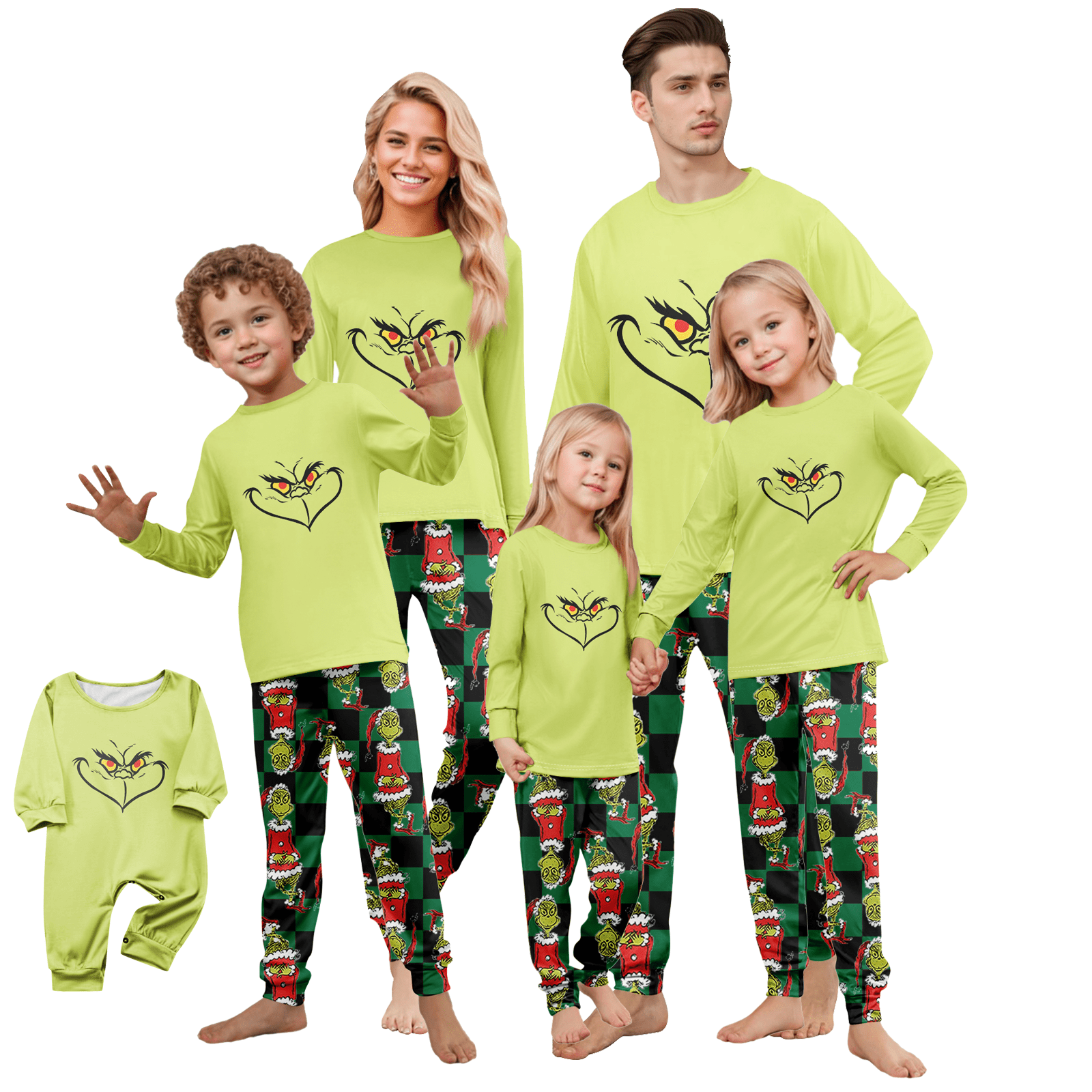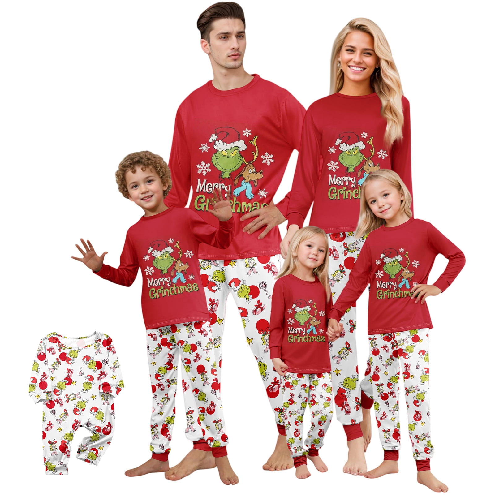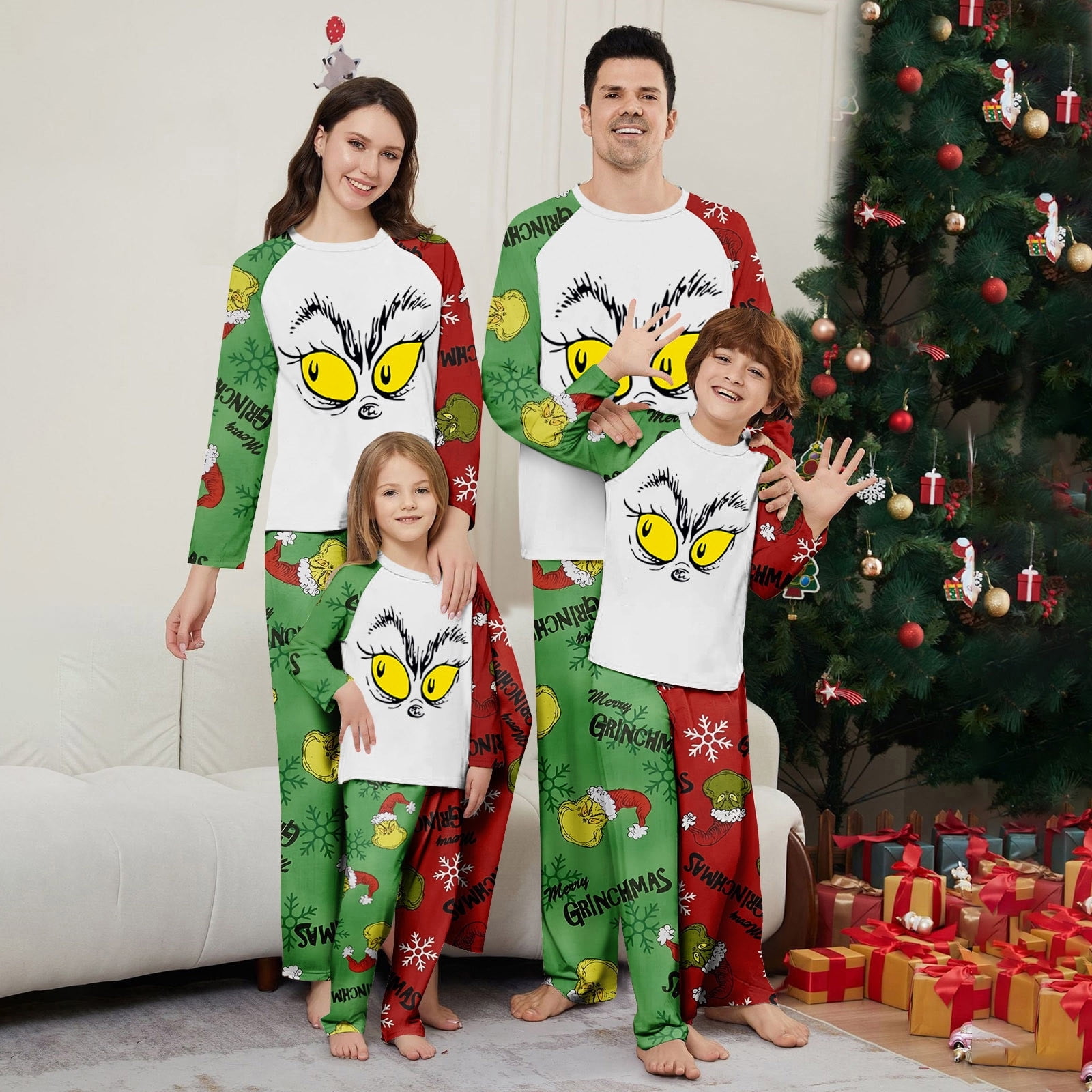 FlareFable Grincch Print Christmas Family Pajamas Matching Sets, Cute ...