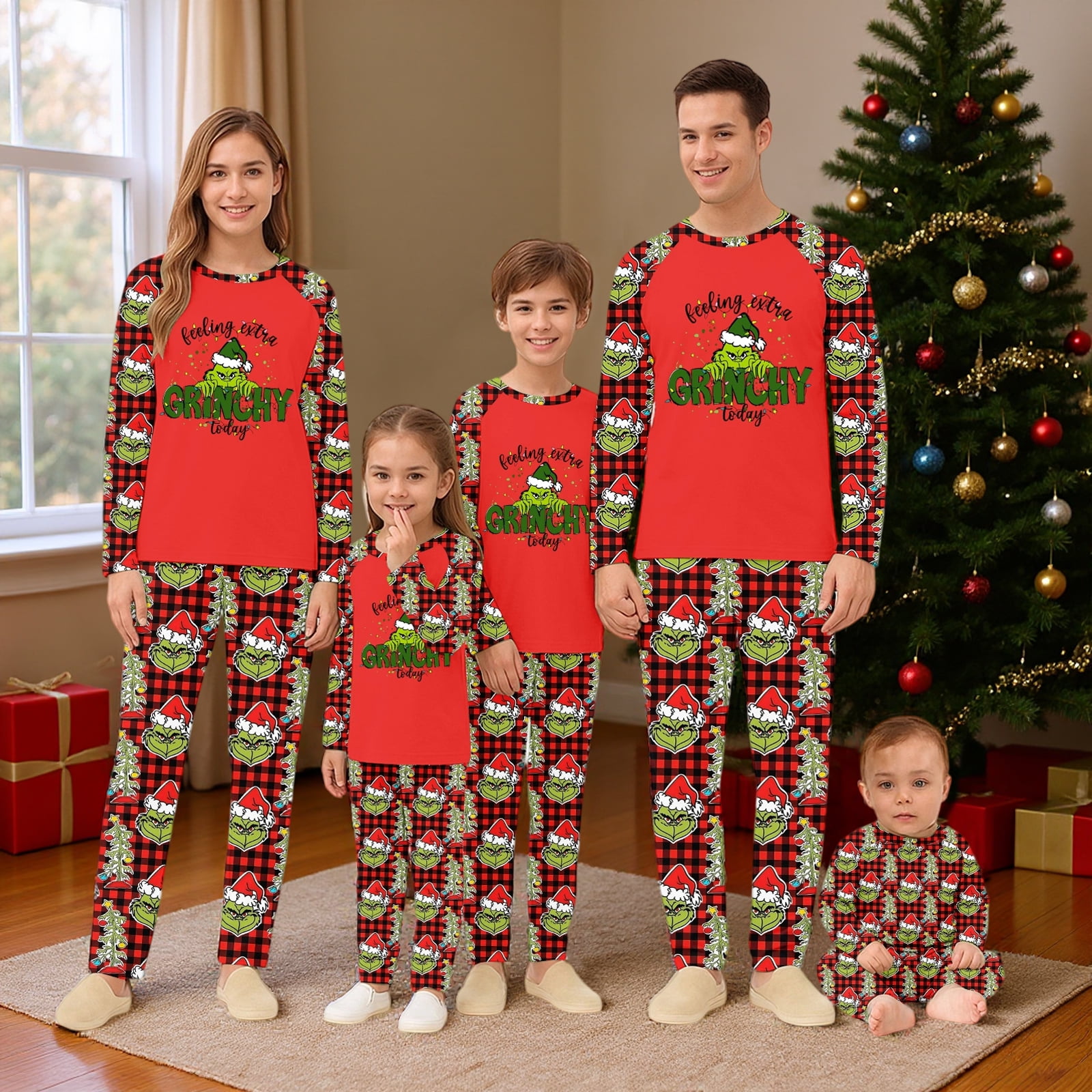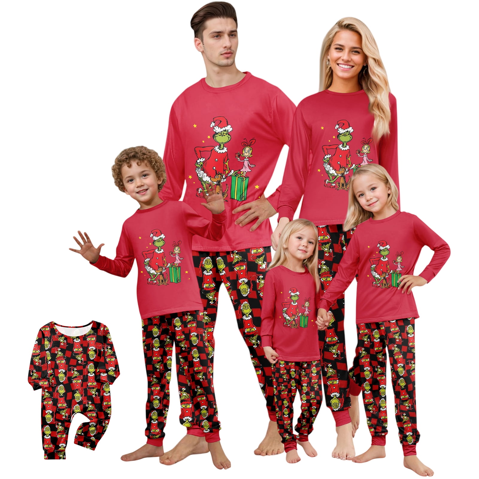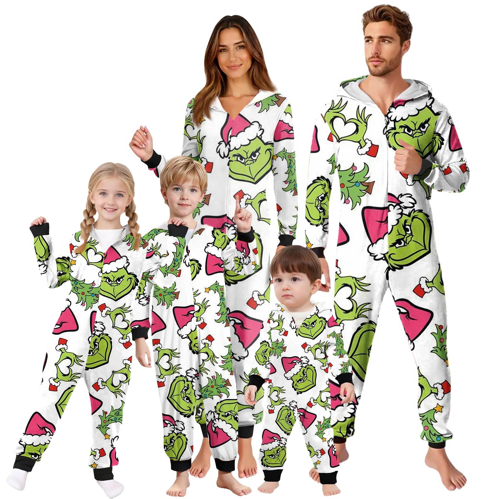 FlareFable Grincch Print Christmas Family Pajamas Matching Sets, Cute ...