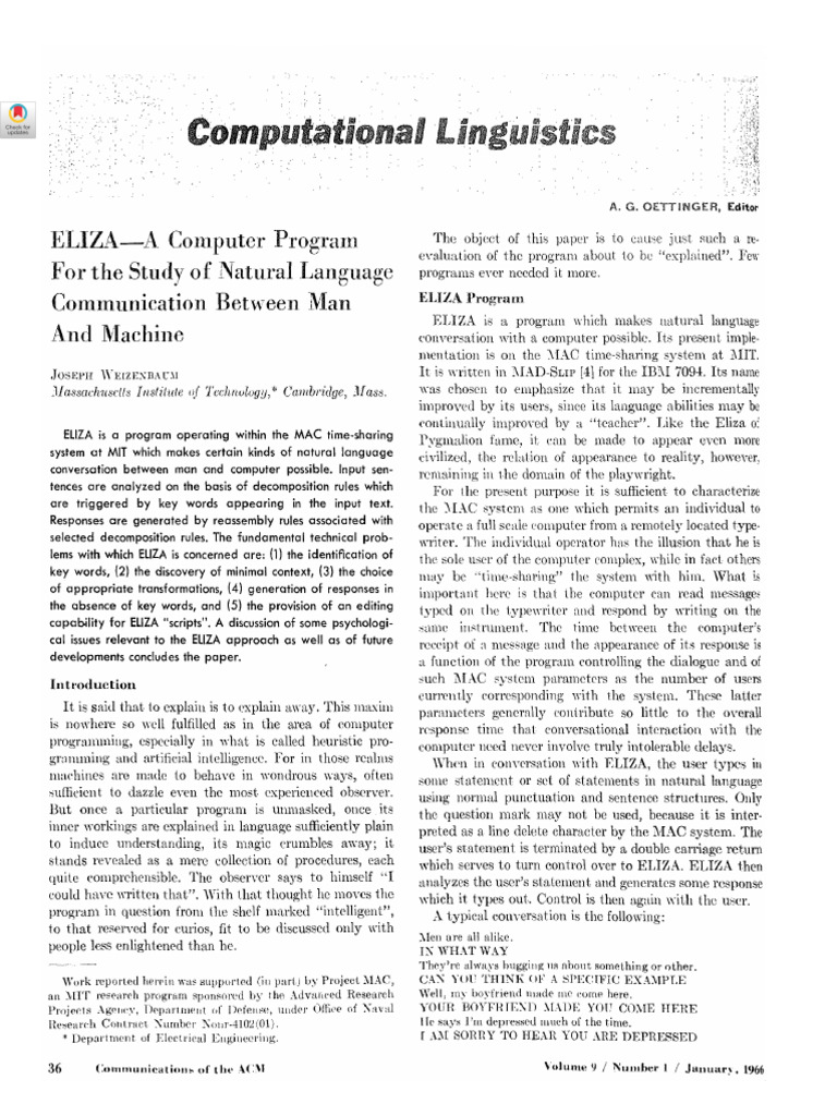 ELIZA--A Computer Program For the Study of Natural : Free Download ...