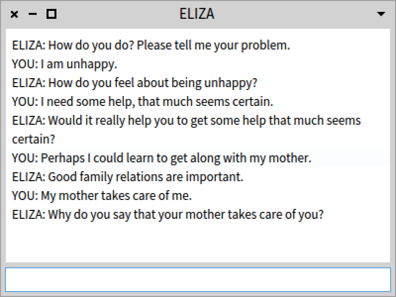 Output of ELIZA program. Source:... | Download Scientific Diagram