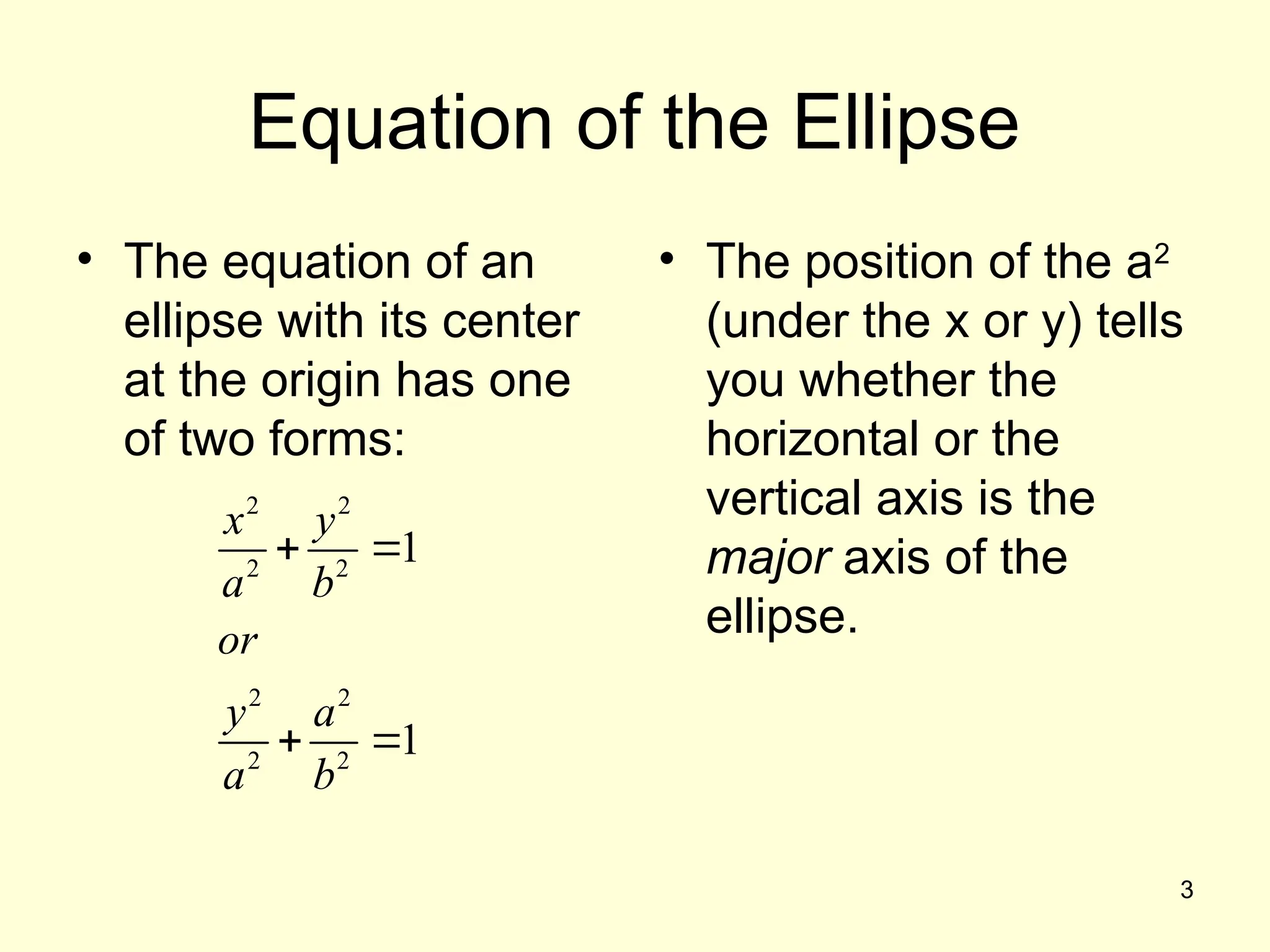 Standard Form of the Equation of an Ellipse with Center at the Origin ...