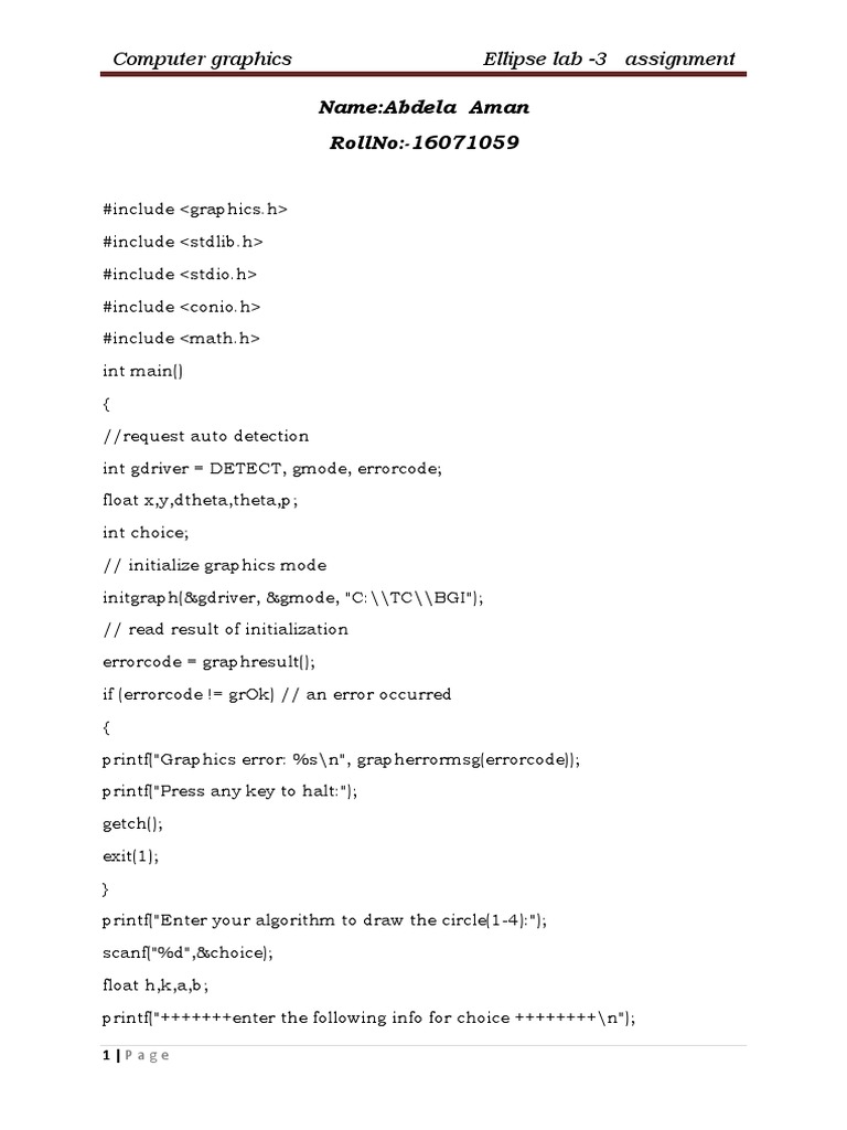 Computer Graphics Ellipse Lab - 3 Assignment | PDF