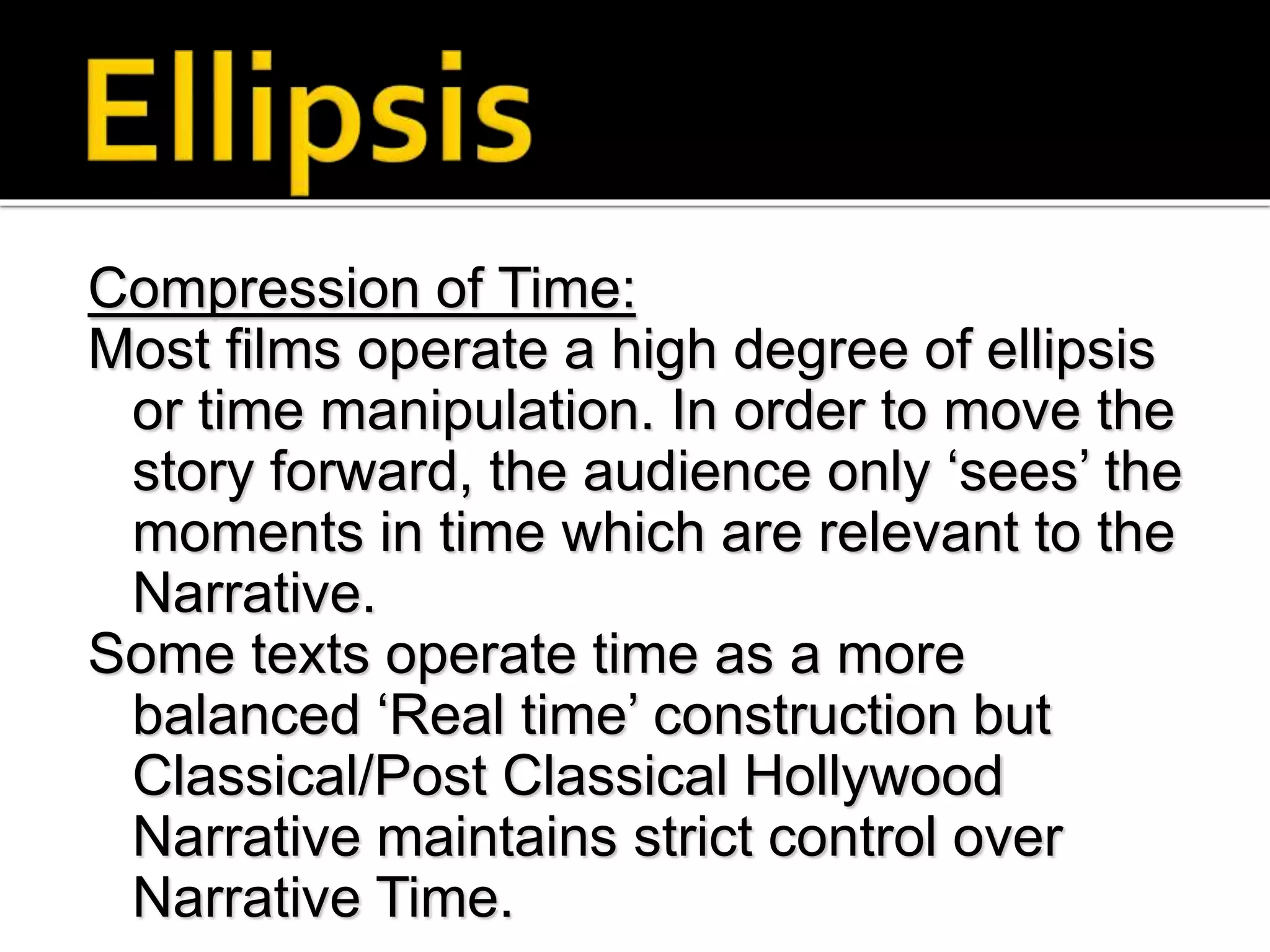 FILM 101 Lectures 1 - Hollywood Narration - Ellipsis- what to leave in ...