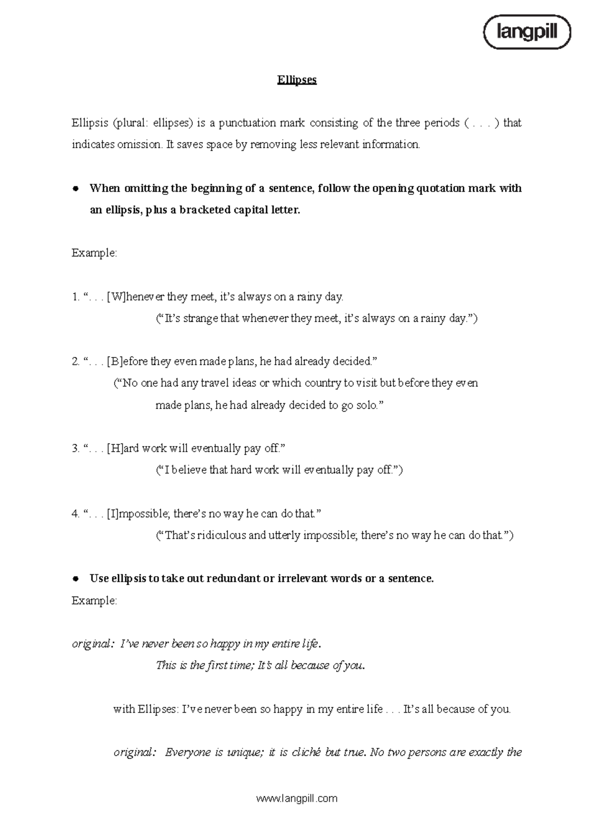 014 Ellipses: Understanding and Using Ellipsis in Writing - Studocu