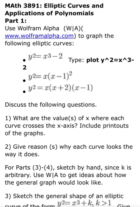 Solved MAth 3891: Elliptic Curves and Applications of | Chegg.com