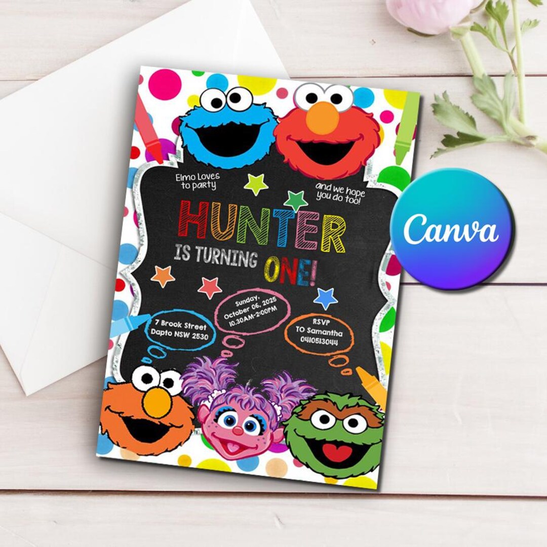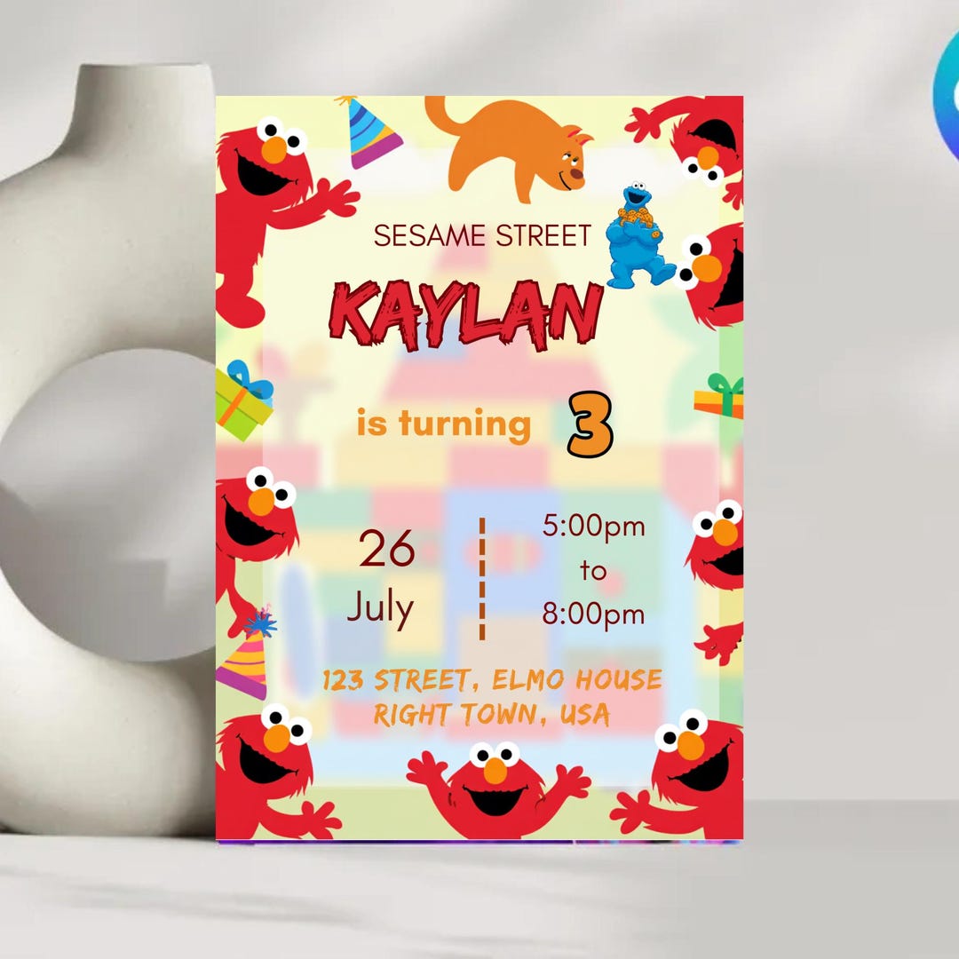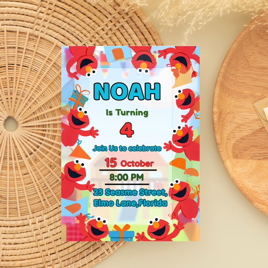 Elmo Birthday Invitation, Canva Template, Sesame Street Party Invite - Etsy
