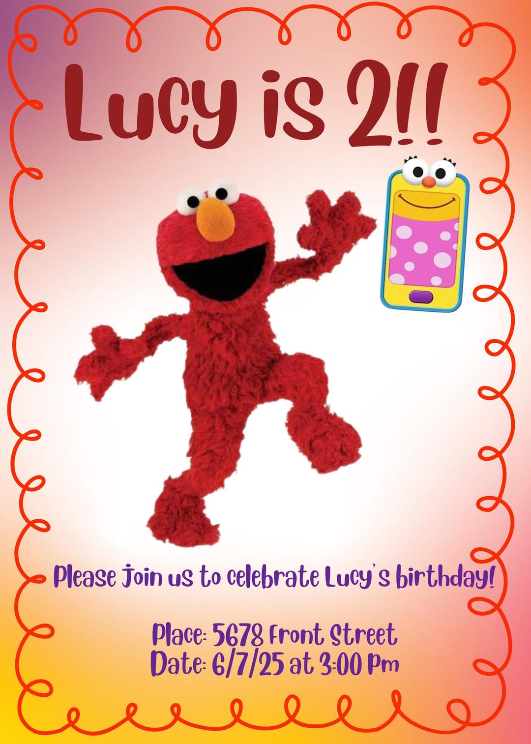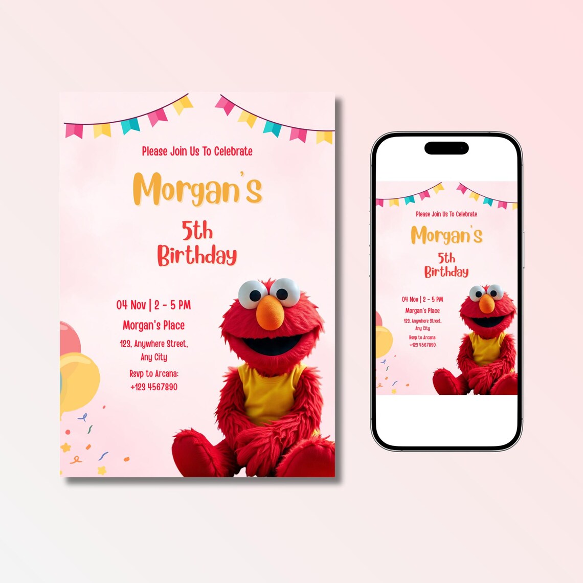Editable Elmo Theme Birthday Invitation Perfect for Any Birthday Event ...