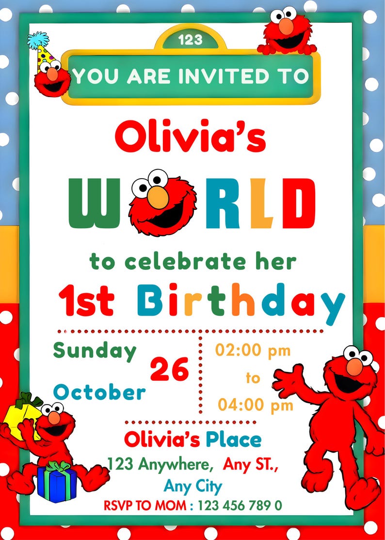 Sesame Street Birthday, Elmo Invitation, Pesonalized | Inspire Uplift