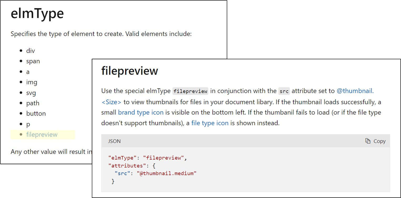 Microsoft Lists Formatting: Update to filepreview elmType in custom ...