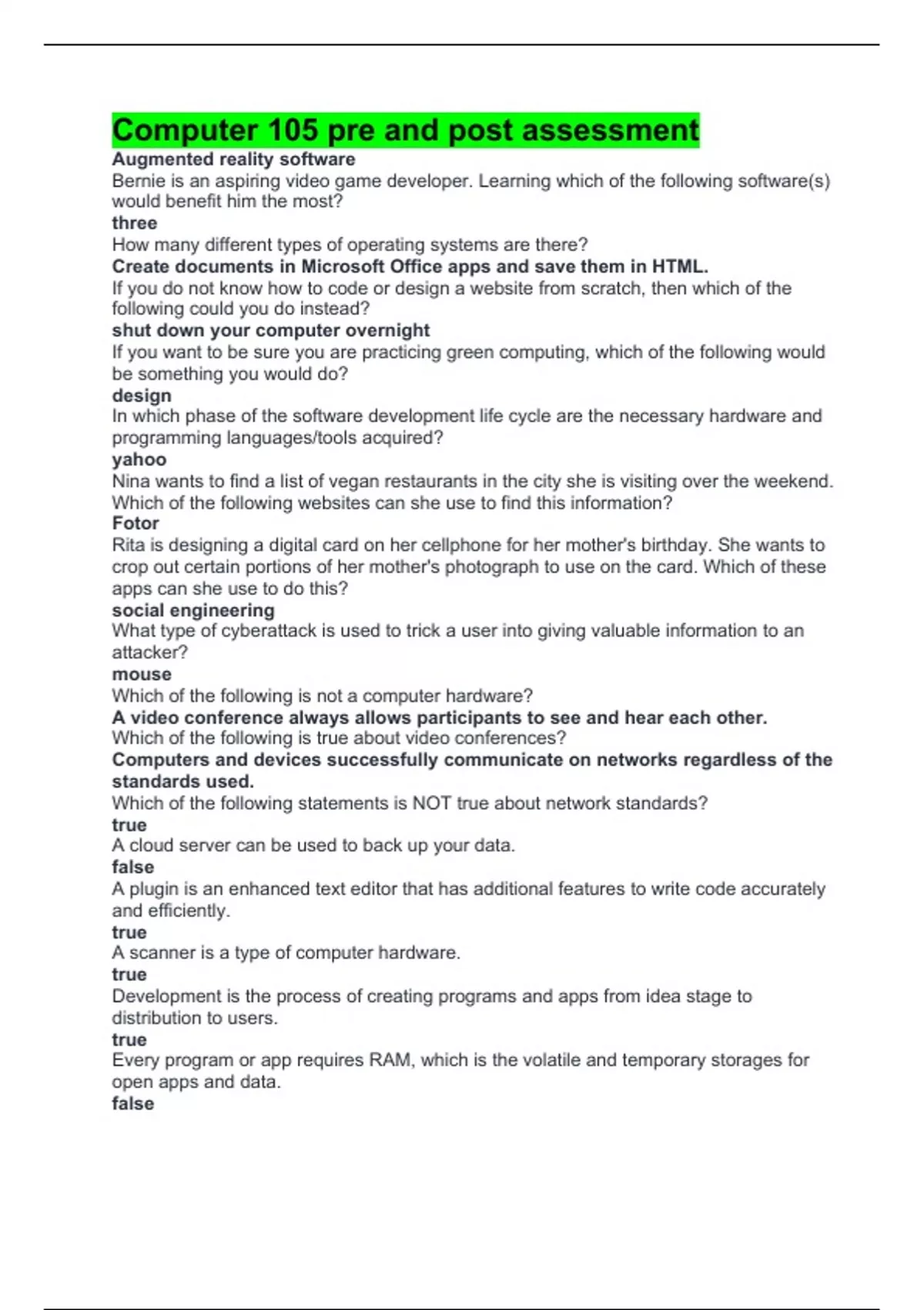 Computer 105 pre and post assessment - Computer 105 - Stuvia US
