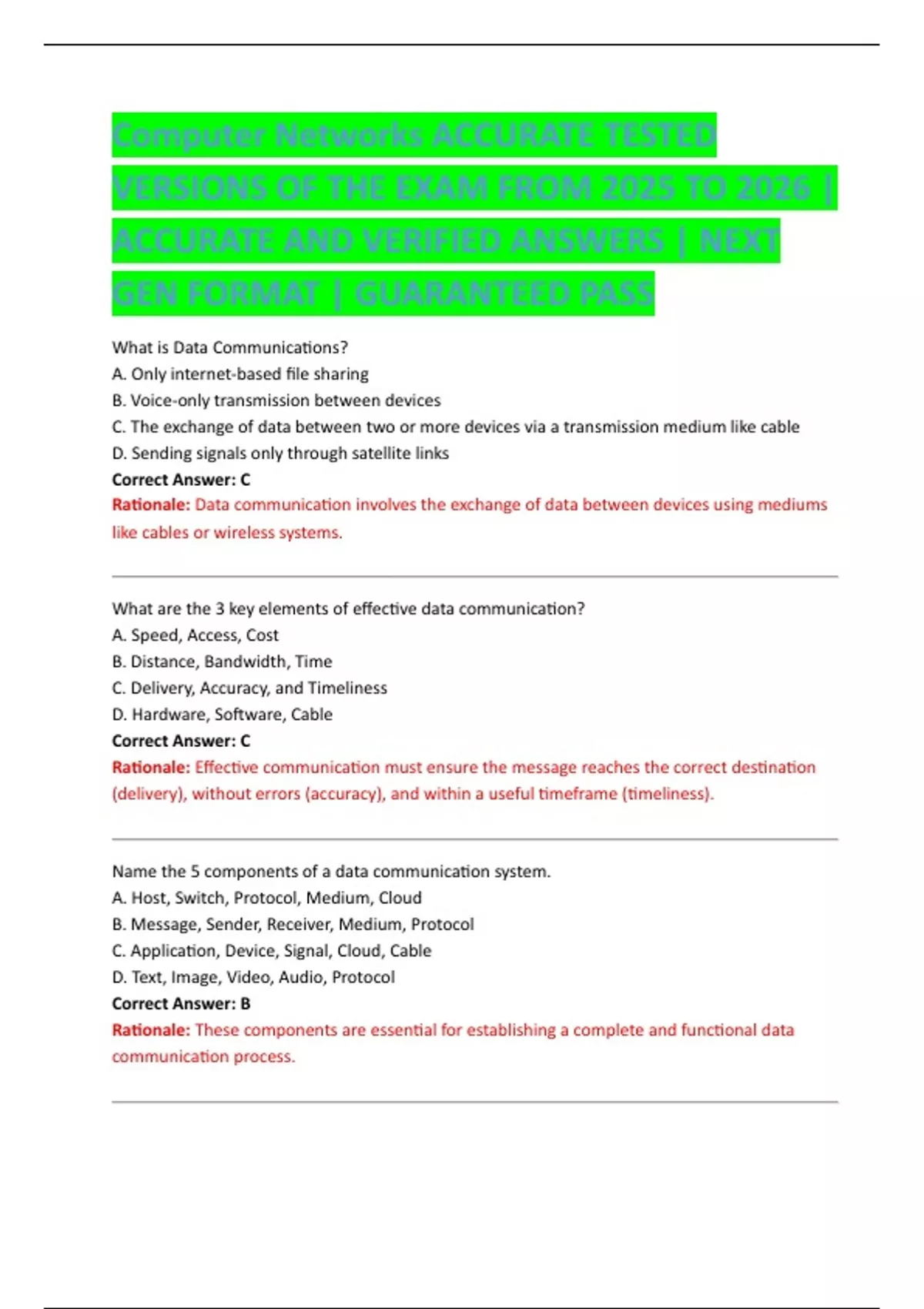 Computer Networks ACCURATE TESTED VERSIONS OF THE EXAM FROM 2025 TO ...