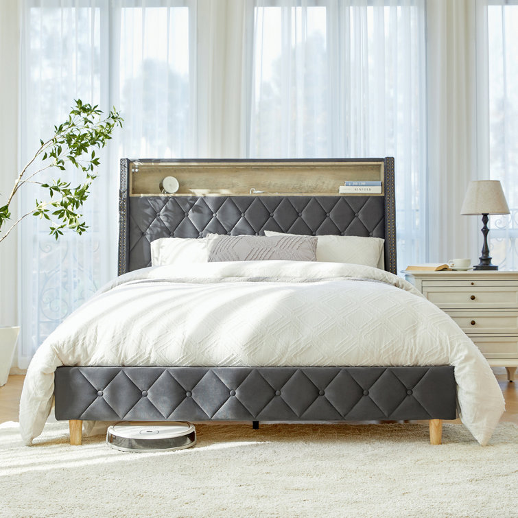Lark Manor EluidTall Wingback Bed With Built-In Lighting and Power ...