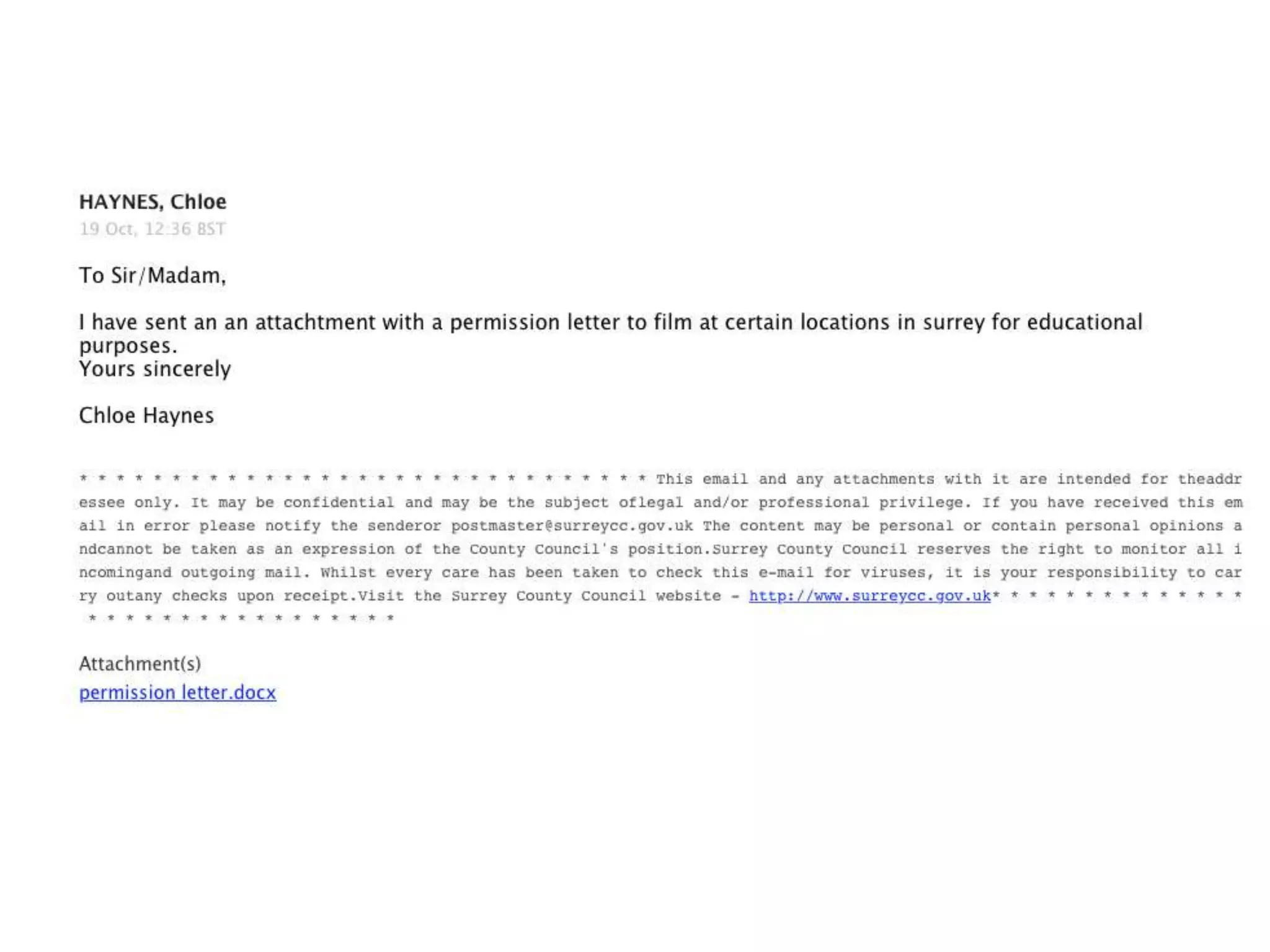Filming permission email evidence | PPTX