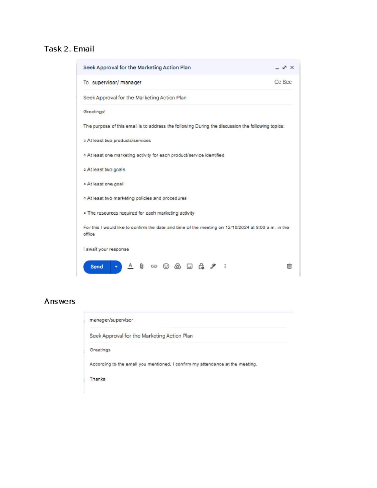 Email Evidence for Marketing Action Plan Approval Discussion - Studocu