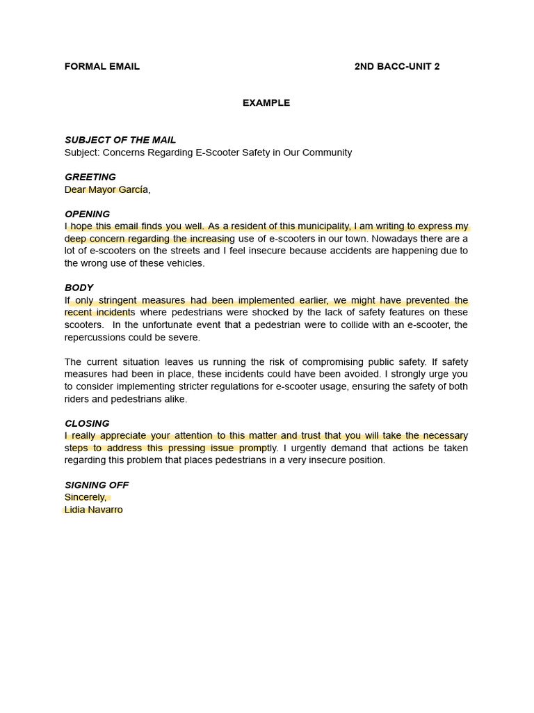 FORMAL EMAIL B2 EXAMPLE - Docsity